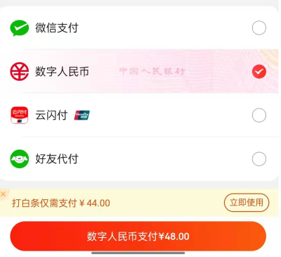 在应用场景方面,相比2021年6月时仅几家平台支持线上支付,目前试点的数字人民币App接入了多种线上支付场景。根据记者统计,目前支持线上支付的有49家商户,包括京东、美团、饿了么、天猫超市、滴滴出行、哔哩哔哩、快手、爱奇艺、腾讯视频、百度等互联网商家,以及顺丰速运、网上国网(用于电费支付)、中石化、中国电信翼支付等生活常用支付场景。 记者使用数字人民币支付了京东的订单,使用方式与电子支付工具相似,首先为电子钱包充值,然后将京东添加进子钱包进行授权,之后在京东订单的付款方式中,就可以看到数字人民币子钱包选项,选择支付完成数字人民币线上支付。