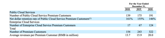 在年报中的数据口径,实际上是交付(Delivery)业务在公有云和企业云两块业务中的占比。 作为隶属公有云的交付(Delivery)业务,其在公有云业务中2020年营收占比为63.9%,自2017年以来一直缓慢上升。 正因此,由于金山云常年靠CDN支撑营收,这部分业务在降价潮之后利润微薄,导致金山云在上市后仍避免不了增收不增利的命运。 02 大客化的优与忧 在金山云上市之际,国内云市场呈现出“一超多强”的格局。 对于其他云厂商较高的市场份额,雷军给出发展建议是,大的市场比不了巨头,金山云不能干大而全,而是专注头部客户,以及垂直领域能不能放在几个关键点上,比如游戏云、视频云等,走差异化的路线。 以上种种概括起来,无非是大客化的策略。 大客化策略的好处是,持续发展品牌头部客户,能够有效提升ARPU,改善流失率。对于金山云而言,则是差异化破局的关键之一。 从招股书和财报数据来看,金山云将较大规模(年收入超过人民币70万元)的客户称为高级客户。 且从招股书可以看到,2017年至2019年,金山云从高级客户产生的收入占比极高,分别为11.64亿元、21.14亿元和38.53亿元,占到了同期总收入的93.7%、95.3%和97.4%。大客化策略十分明显。 大客化战略同样作用到ARPU值上,财报显示,金山云2017年高级客户ARPU值为1030万,2019年增长至1590万,2020年为2000万。