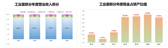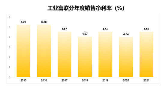富士康的员工薪酬一点都不低,而且员工薪酬在收入中占比也不高。从成本构成的角度看,工业富联的收入中,员工薪酬只占不到6%,2021年人均薪酬12.87万。