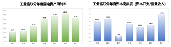 资本密集度指标也可以反映出工业富联的资本开支强度,每年的资本开支只占到营业收入的1%出头。