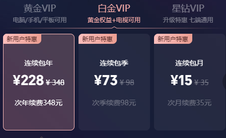 目前,据爱奇艺官网显示,爱奇艺黄金 VIP 会员显示为电脑、手机、平板可用;白金 VIP 会员拥有黄金 VIP 会员权益的同时电视端也可以使用。